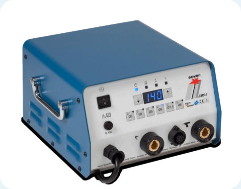BMS-10i SURSĂ DE SUDARE BOLŢURI PENTRU SUDARE MOBILĂ PÂNĂ LA M10 Noua sursă de sudare bolțuri invertorizată la 3 faze de curent cu putere de sudare de 600 A, este compactă, deosebit de eficientă energetic și imbatabil în raportul preț / performanță.