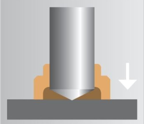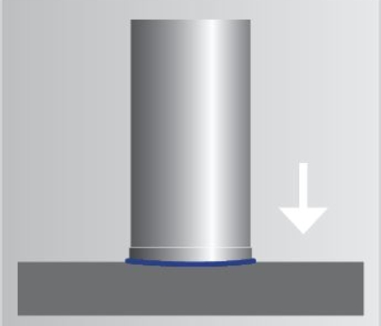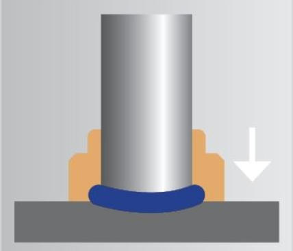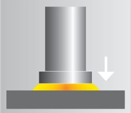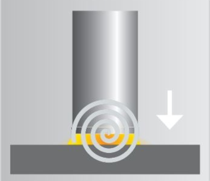 Bolţul se scufundă în zona foarte plană a băii de sudare şi este sudat.