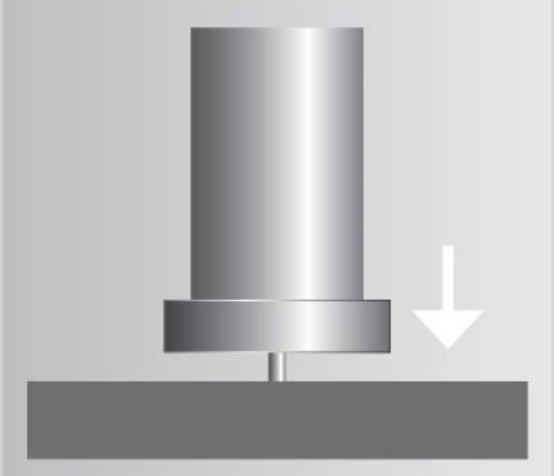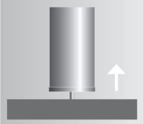 Bolţul atinge piesa și este ridicat. Arcul electric este iniţializat