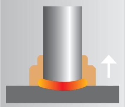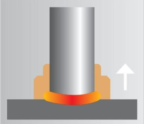 Arcul electric realizat produce o zona de topire îngustă la bolţ şi piesa metalică